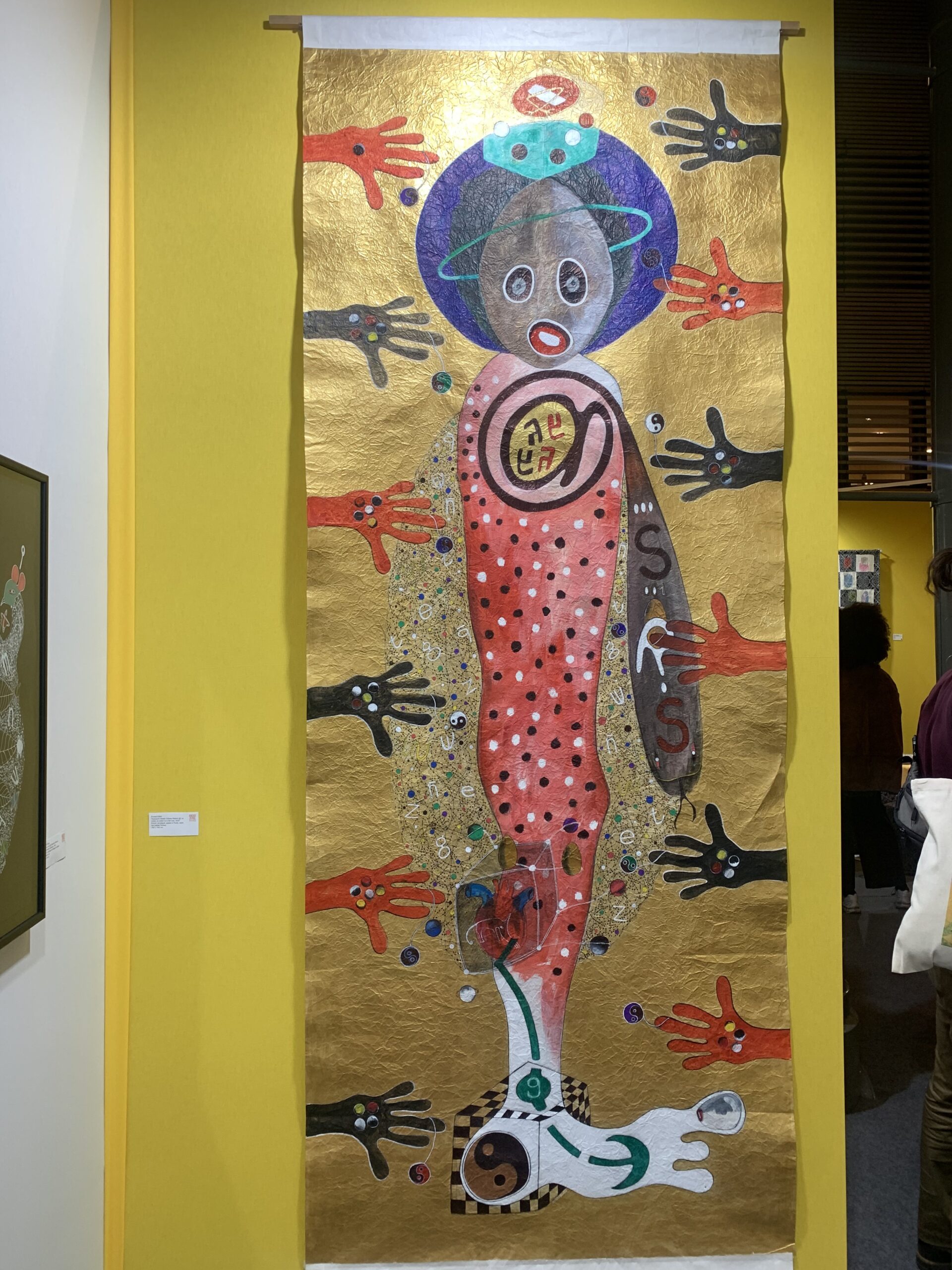 Né à Yaoundé au Cameroun et formé en France, le parcours de Mouangue à travers l’Afrique, l’Europe et l’Asie a façonné une pratique qui transcende les frontières culturelles. Désormais installé au Japon, il a découvert dans la culture japonaise un écho inattendu de ses racines ouest-africaines. Son installation était imprégnée de mémoire collective, invitant les visiteurs à ralentir et à voyager à travers un univers empreint de spiritualité et de symboles.