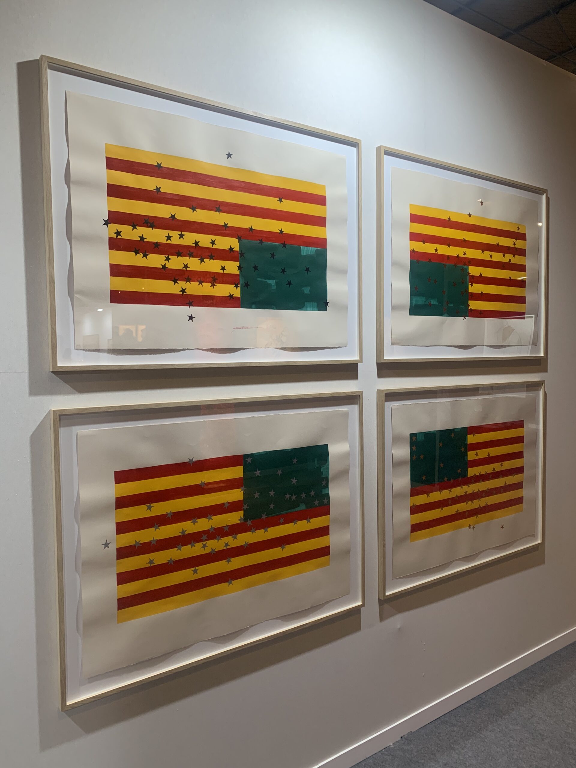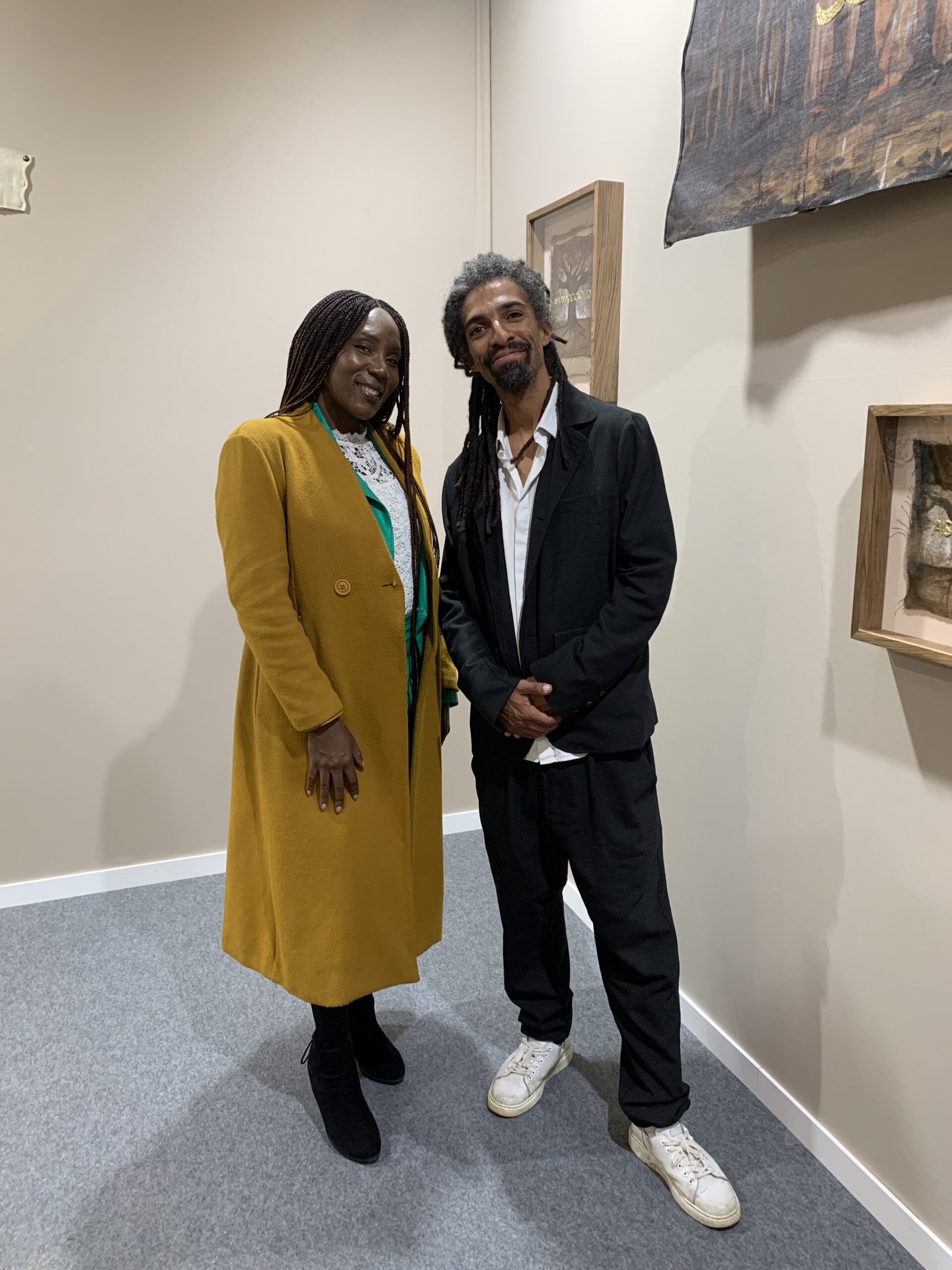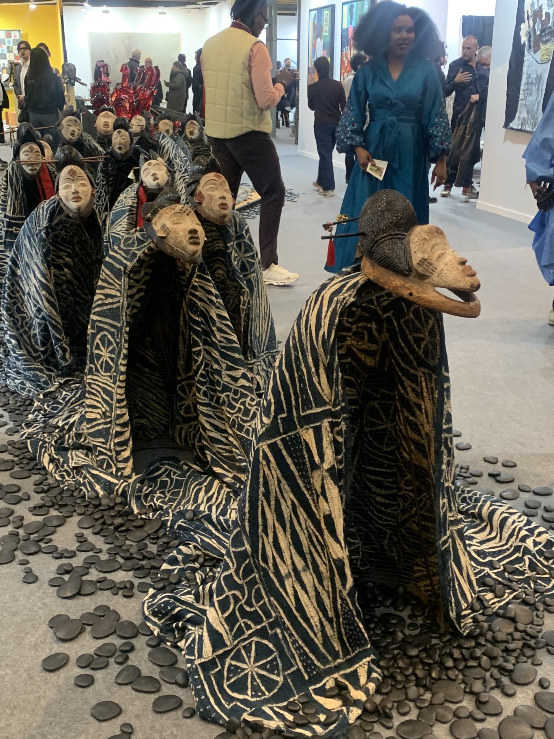 Nu Barreto, présenté par la Galerie Nathalie Obadia, introduisait un contrepoint provocateur. Né en Guinée-Bissau en 1966, Barreto travaille à travers peinture, installation et sculpture pour interroger l’identité postcoloniale et la géopolitique africaine.